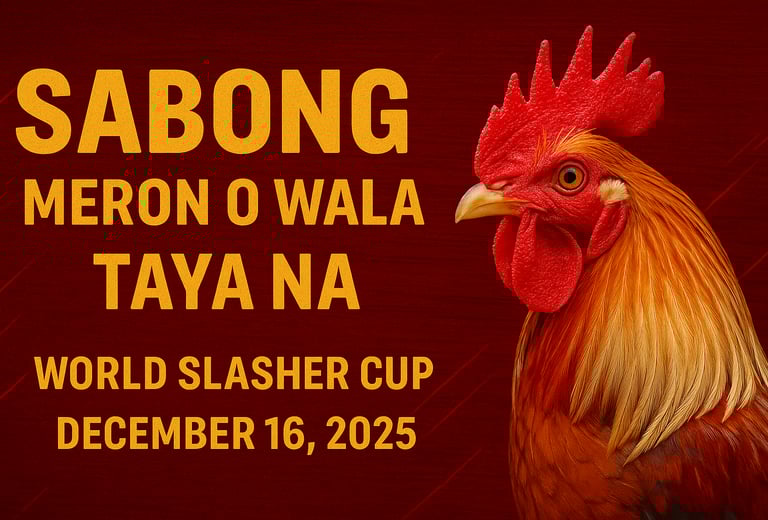 The Meron o Wala taya format emphasizes clarity and decisiveness. With straightforward choices and no distractions, the attention remains firmly on the quality of the pairing, the conditioning of the roosters, and the discipline of the camps. At WORLD SLASHER CUP, this format highlights sabong in its most authentic expression—direct, intense, and uncompromising.